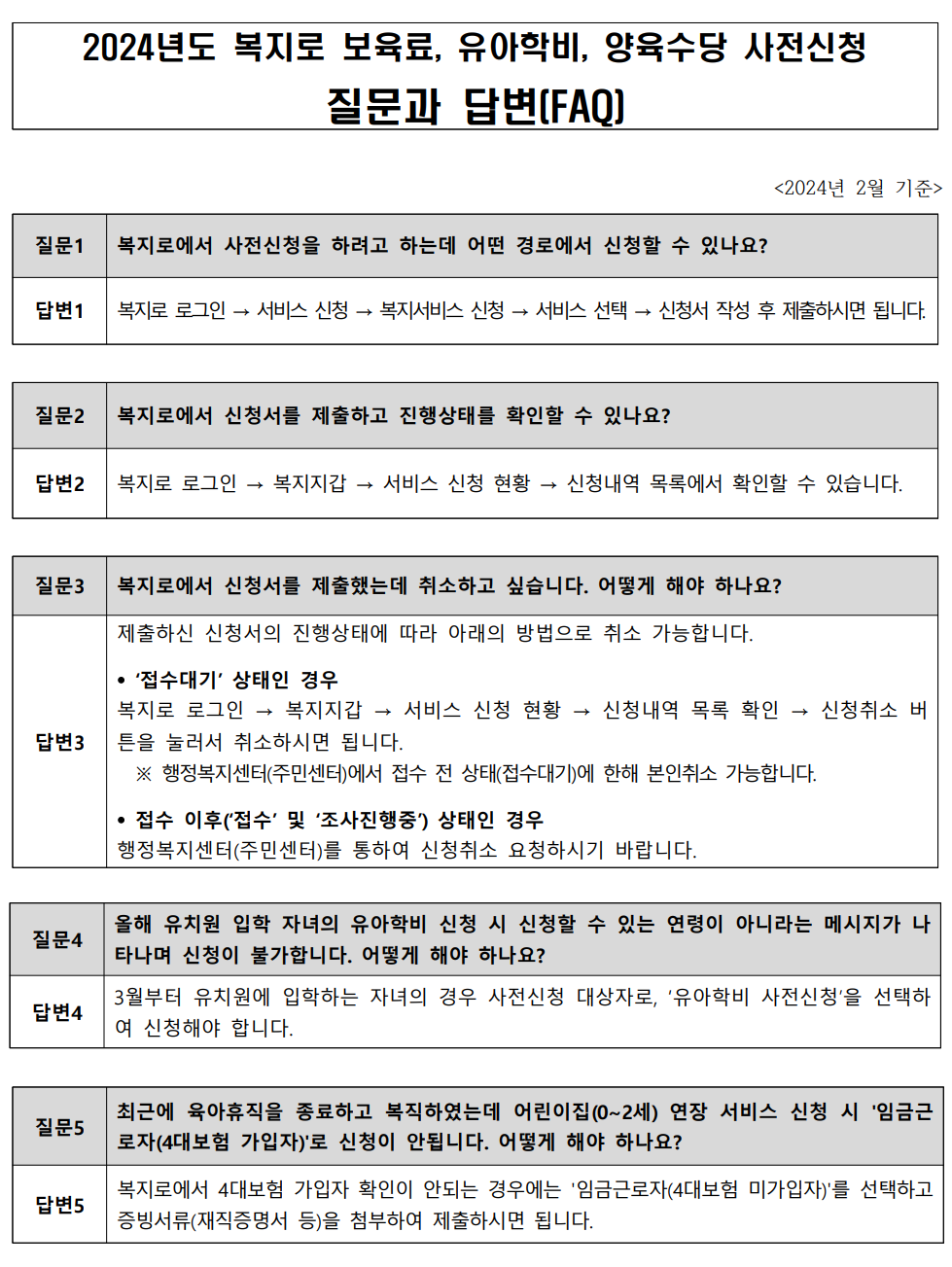 2024년을 맞아 새롭게 시작되는 영유아 보육서비스 사전신청에 따른 혜택 소개를 드립니다.