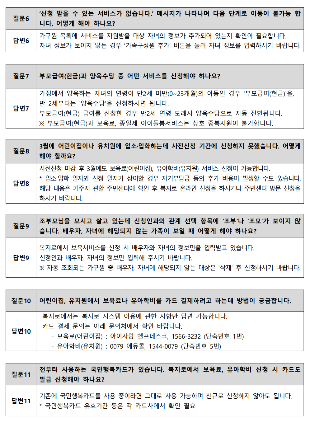- 온라인 신청은 영유아의 부모에 한정되며, 다른 보호자는 방문 신청이 가능합니다.