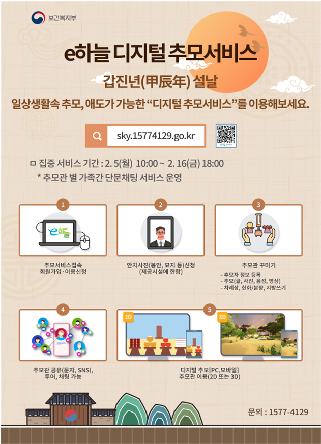 이번 설 연휴를 맞아, 보건복지부에서 제공하는 디지털 추모서비스를 통해 고인을 추모하고 가족 간의 소통으로 가정의 평화와 안식을 경험해보세요