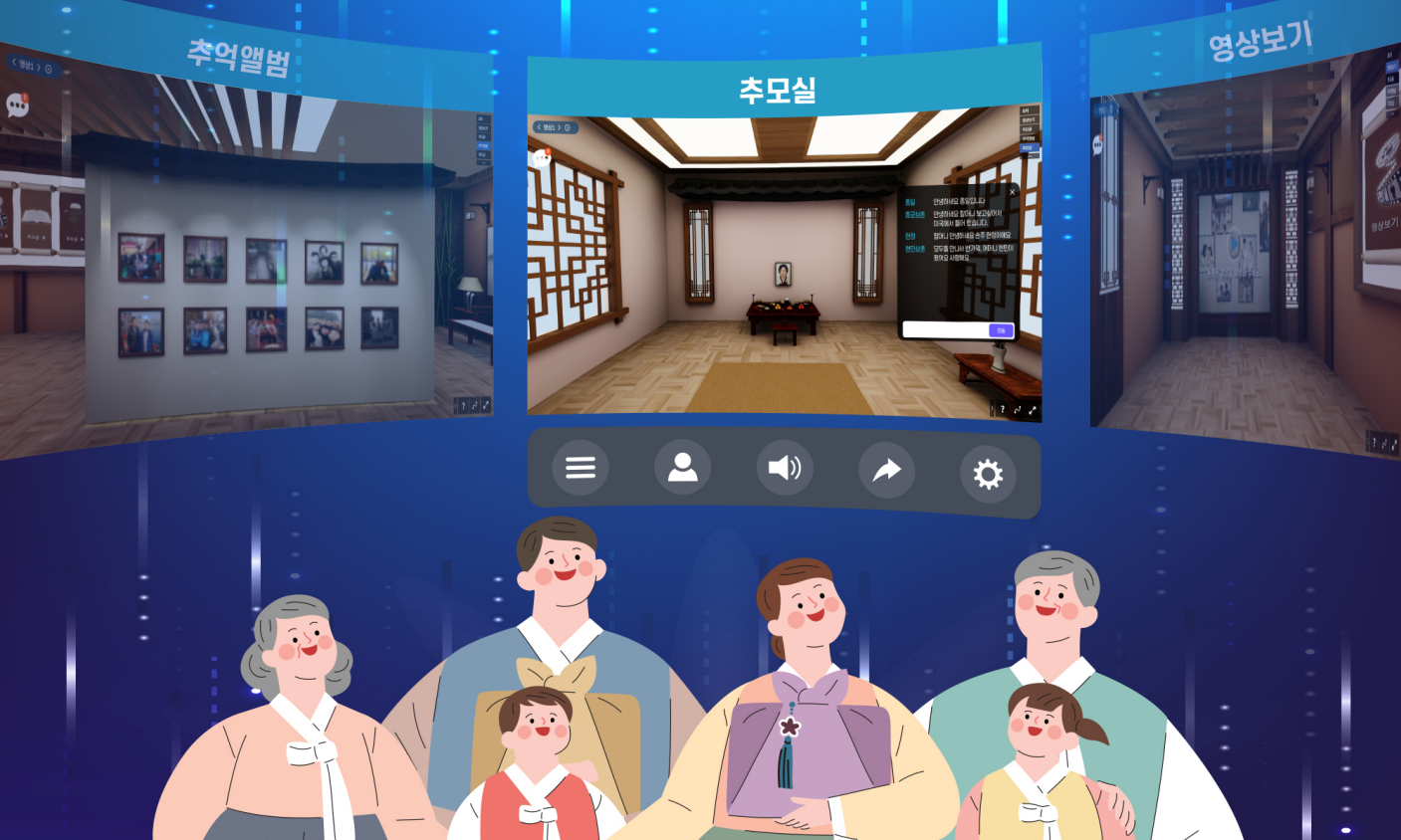 고인의 추모관을 개설한 후에는 사진, 영상, 음성 메시지 등을 등록할 수 있으며, 3D 추모관을 통해 채팅을 통한 소통과 함께 추모관 투어를 즐길 수 있습니다.