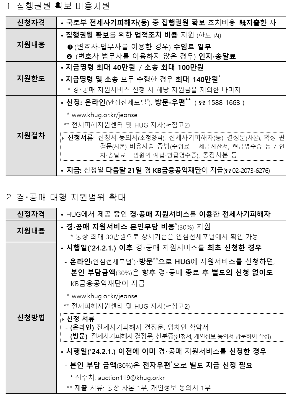 피해자들의 임차 보증금 회수를 위한 경매절차에 사용되는 본인 부담 비용을 최대 140만원까지 지원하고,